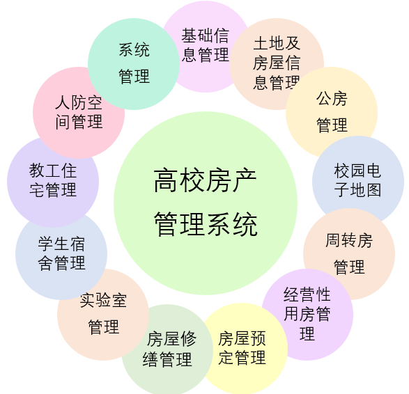 房(fáng)産管理(lǐ)系統從(cóng)學校(xiào)房(fáng)屋對(duì)象、∑管理(lǐ)部門(mén)、管理(lǐ)規範的(de)不(bù)同将學校(xiào)房(fáng)産分₽(fēn)為(wèi)以下(xià)幾個(gè)應用(yòng)模塊:基礎信息管理(lǐ)、土(tǔ)地(dì)及房(fáng)屋信息管理(lǐ)、公用(yònπg)房(fáng)管理(lǐ)、校(xiào)園電(diàn)子(zǐ)地(dì)圖、周轉房(fáng)管理(lǐ)、經營性房(fáng)管理(lǐ)、房(fáng)屋預定管理(lǐ)、房(fá ng)屋修繕管理(lǐ)、實驗室管理(lǐ)、學生(shēng)宿舍管理(lǐ)、教工(gōng)住宅管理(lǐ)、人(rén)防空(kōng)間(jiān)™管理(lǐ)、移動端APP、系統管理(lǐ)等主要(yào)應用(yòng)模塊。